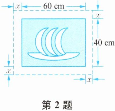 2. 在一幅长60 cm,宽40 cm的矩形书画作品的四周镶一条金色纸边,制成一幅矩形挂图,如图所示. 如果要使整个作品的面积是2816$cm^2$,设金色纸边的宽为$x$ cm,那么$x$满足的方程是(
