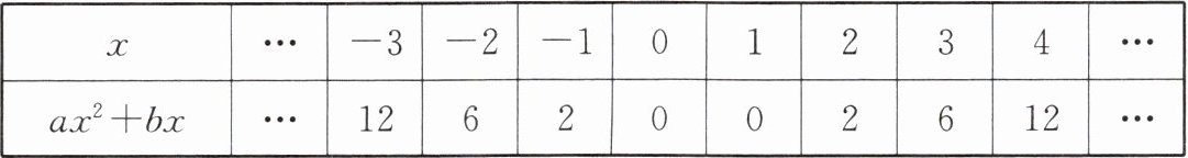 由表格可知,当$x = -1$时,$ax^2 + bx = 2$;当$x = 2$时,$ax^2 + bx = 2$。