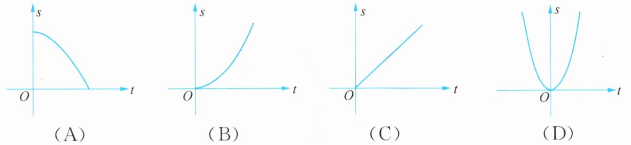 8. 苹果熟了,从树上落下所经过的路程 $ s $ 与下落的时间 $ t $ 满足 $ s= \frac{1}{2}gt^2 $($ g $ 是不为 0 的常数),则 $ s $ 与 $ t $ 的函数图象大致是(
