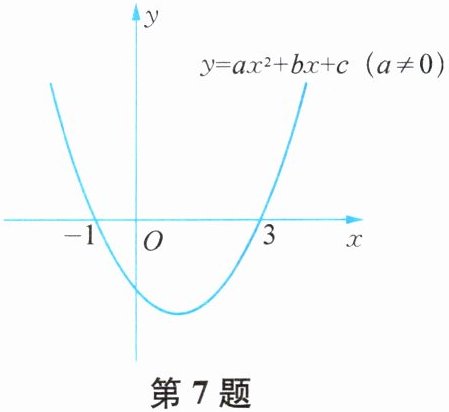 7. 二次函数 $y= ax^2+bx+c(a≠0)$ 的图象如图所示,下列说法:① $2a+b= 0$;②当 $-1≤x≤3$ 时,$y<0$;③若 $(x_1,y_1)$,$(x_2,y_2)$ 在函数图象上,当 $x_1<x_2$ 时,$y_1<y_2$;④ $9a+3b+c= 0$. 其中正确的是( ).