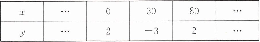 解:由表可知,当$x=0$和$x=80$时,$y=2$,