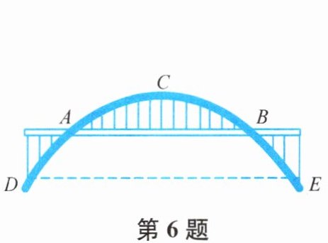 6. 某地一座抛物线形拱桥如图所示,拱桥在竖直平面内与水平桥面相交于$A$,$B$两点,拱桥最高点$C到AB$的距离为9 m,$AB= 36\ m$,$D$,$E$为拱桥底部的两点,且$DE// AB$,点$E到直线AB$的距离为7 m,则$DE$的长为