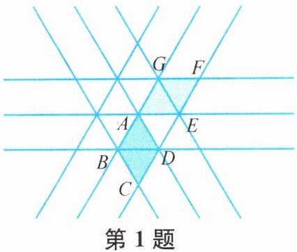 1. 同学们曾玩过万花筒,它是由三块等宽等长的玻璃片围成的. 万花筒的一个图案如图所示,图中所有小三角形均是全等的等边三角形,其中的菱形AEFG可以看成是把菱形ABCD以A为中心(