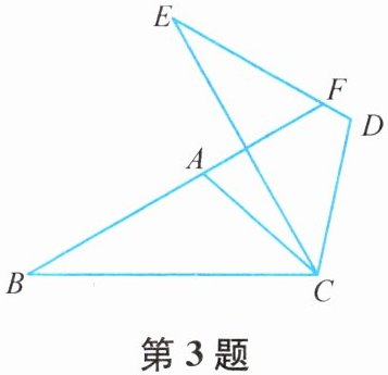 3. 如图,△ABC中,∠B= 30°,将△ABC绕点C顺时针旋转60°得到△DEC,点A,B的对应点分别为D,E,延长BA交DE于点F,下列结论一定正确的是(