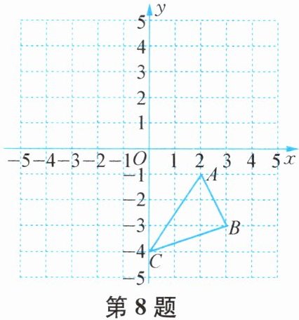 8. 在如图的平面直角坐标系中,△ABC的三个顶点坐标分别为A(2,-1),B(3,-3),C(0,-4).