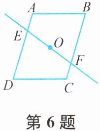 6. 如图,直线EF经过平行四边形ABCD的对角线的交点,若AE= 3 cm,四边形AEFB的面积为$15 cm^2,$则CF=