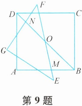 9. 如图,将正方形 ABCD 中的△ABD 绕对称中心 O 旋转至△GEF 的位置,EF 交 AB 于 M,GF 交 BD 于 N. 请猜想 BM 与 FN 有怎样的数量关系,并证明你的结论.