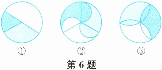 6. 学校有一个圆形花坛,现要求将它三等分,以便在上面种植三种不同的花,你认为符合设计要求的图案是