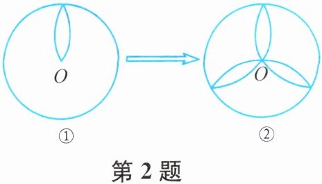 解:观察图①和图②,图①中圆内有一个竖直的“叶片”图形,图②中圆内有三个均匀分布的“叶片”图形,且三个“叶片”关于圆心O成中心对称。