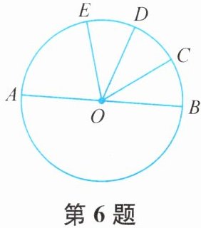 6. 如图,AB是⊙O的直径,$\widehat{BC}= \widehat{CD}= \widehat{DE}$,∠COD= 35°,则∠AOE的度数为