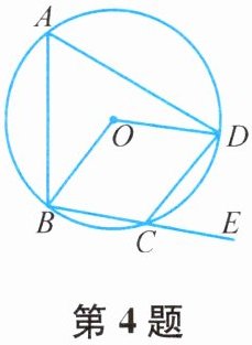 4. 如图,四边形ABCD内接于⊙O,点E在BC的延长线上,若∠BOD= 120°,则∠DCE=