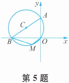 5. 如图,⊙C过原点O,且与两坐标轴分别交于点A,B,点A的坐标为(0,4),点M是第三象限内圆上一点,∠BMO= 120°,则圆心C的坐标为(