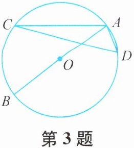 3. 如图,AB是⊙O的直径,∠ACD= 15°,则∠BAD的度数为(
