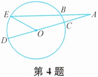 4. 如图,CD是⊙O的直径,点E在⊙O上,点A在线段DC的延长线上,∠EOD= 45°,AE交⊙O于点B,且AB= OD,则∠EAO的度数为(