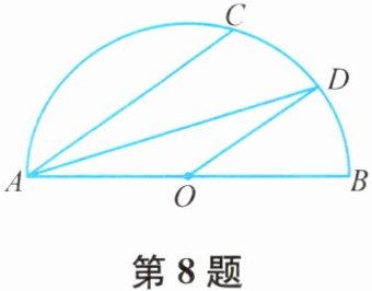 8. 如图,AB是半圆O的直径,C是⌢AB上一点,点D是⌢BC的中点,连接AD.