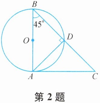 2. 如图,AB是⊙O的直径,AC是⊙O的切线,A为切点,连接BC交⊙O于点D,连接AD. 若∠ABC= 45°,则下列结论正确的是(