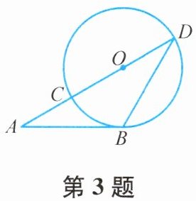 3. 如图,AB是⊙O的切线,B为切点,连接AO交⊙O于点C,延长AO交⊙O于点D,连接BD. 若∠A= ∠D,且AC= 3,则AB的长度是(