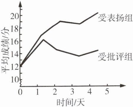 本题主要考查对老师表扬与批评的正确态度。通过观察图表,我们可以看到受表扬组和受批评组的成绩变化。这提醒我们,老师的表扬和批评都是教育手段,我们应正确对待,而不是盲目在意或忽视。