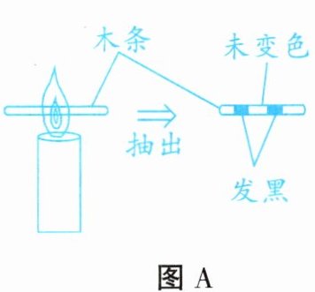 (1)点燃蜡烛,将一根木条迅速平放入火焰中,约1 s后取出,如图A,这证明焰心______。