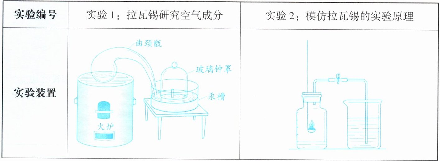| 实验编号 | 实验1:拉瓦锡研究空气成分 | 实验2:模仿拉瓦锡的实验原理 |