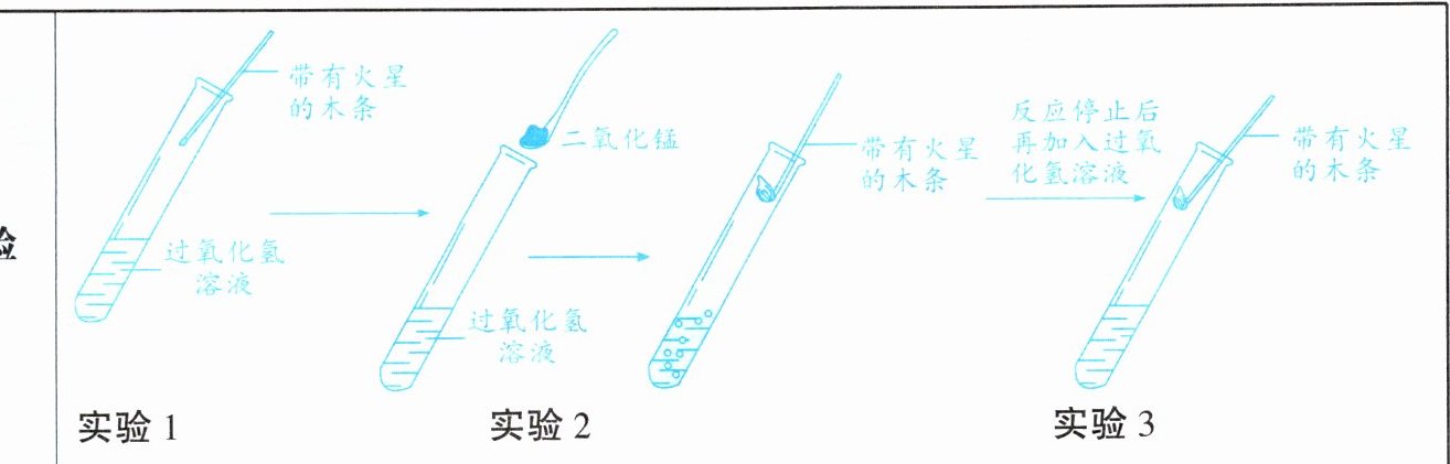 实验1:没有加入二氧化锰,过氧化氢分解速率较慢,所以有少量气泡产生,由于产生氧气较少,带有火星的木条不复燃。