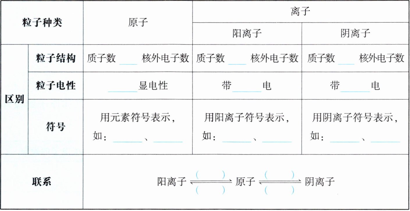 |联系|阳离子$\xrightleftharpoons[( )]{( )}原子\xrightleftharpoons[( )]{( )}$阴离子|