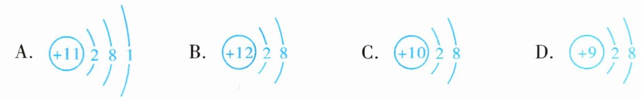 A选项:质子数为11,核外电子数为2 + 8 + 1 = 11,质子数等于核外电子数,该粒子为原子,A选项错误。