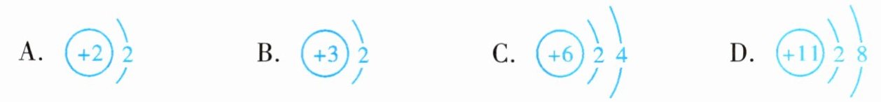 2. 下列结构示意图所表示的粒子属于稀有气体原子的是( )