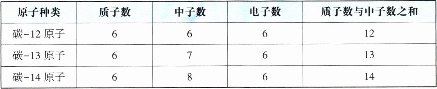 | 原子种类 | 质子数 | 中子数 | 电子数 | 质子数与中子数之和 |