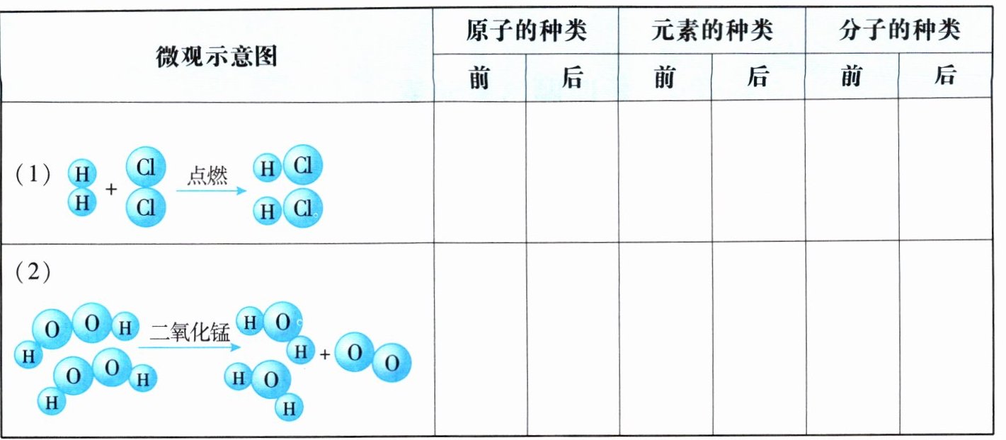 | 微观示意图 | 原子的种类 | | 元素的种类 | | 分子的种类 | |