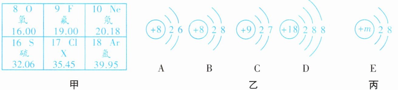 (5)图丙中,若E中$m= 9$,则该粒子符号为______,该粒子名称为______;若E中$m= 12$,则该粒子符号为______。