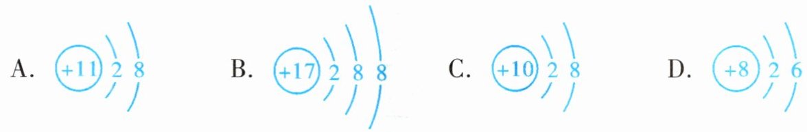 C选项:质子数为10,核外电子数为2 + 8 = 10,质子数等于核外电子数,为原子,故C选项错误。