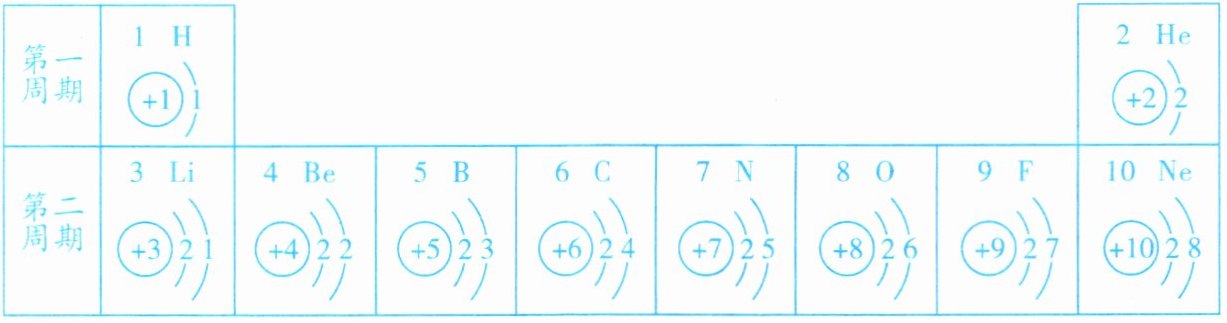 (1)从表格中可以看出,第一周期的原子结构示意图中,电子层数均为1层,即各原子结构的共同之处是都有1个电子层。