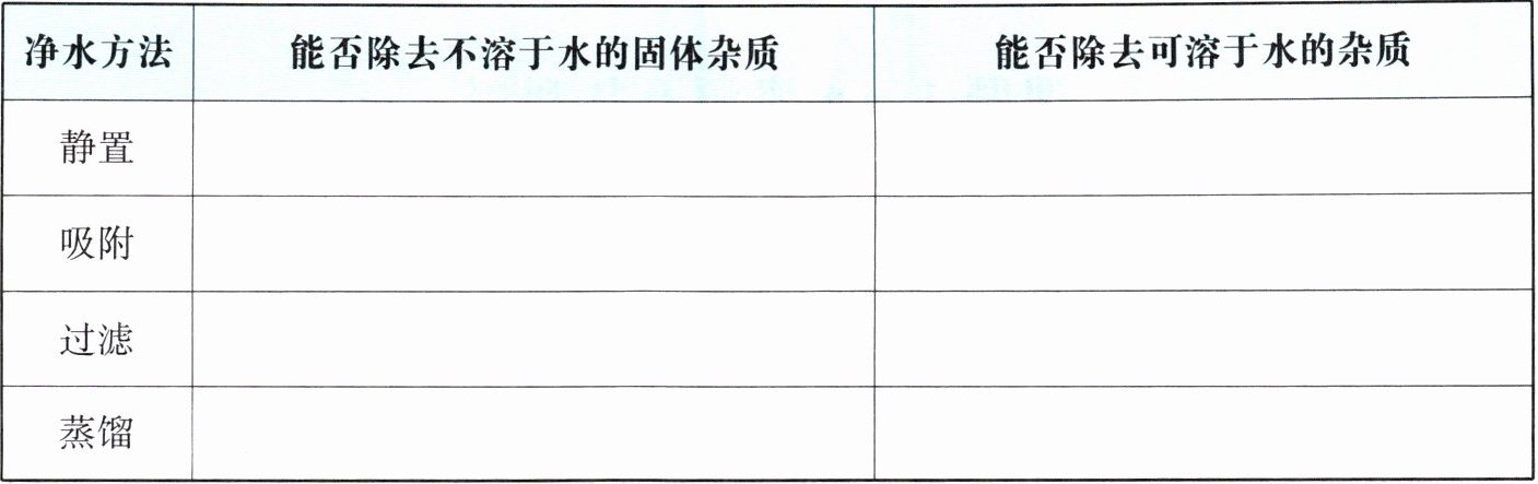 |净水方法|能否除去不溶于水的固体杂质|能否除去可溶于水的杂质|