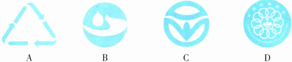解:A为可回收标志,C为中国节水标志,B为节水相关图案,D为环保标志。题目要求适合张贴在水龙头旁的节约用水标识,中国节水标志(C)是官方且常用的节水标识。