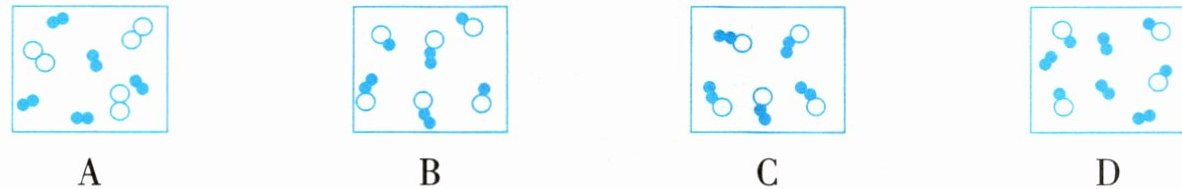 B选项:该图中含有两种不同的分子,一种分子是由同种原子构成的,属于单质;另一种分子是由不同种原子构成的,属于化合物,所以该图表示的是单质和化合物组成的混合物,不符合题意;