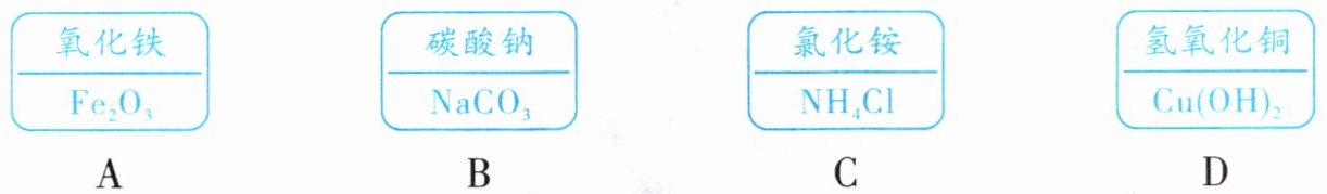 D.氢氧化铜中,铜元素显$+2$价,氢氧根显$-1$价,其化学式为$Cu(OH)_2$,故D正确。