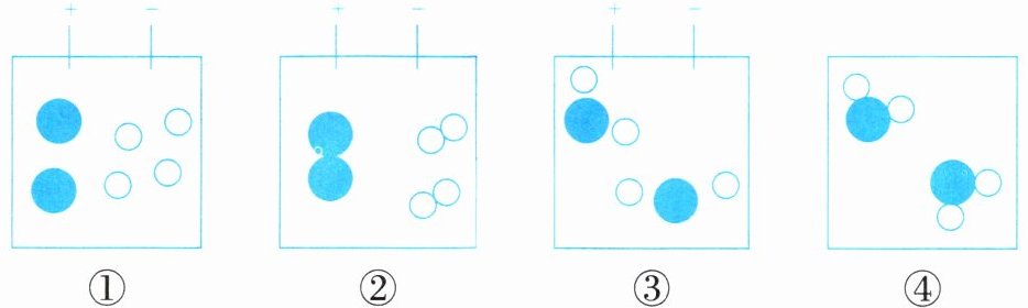 解:电解水的过程中,水分子先分解为氢原子和氧原子,然后氢原子重新组合成氢分子,氧原子重新组合成氧分子。观察图示,④表示水分子,③表示水分子分解成氢原子和氧原子,①表示氢原子和氧原子,②表示氢分子和氧分子。所以粒子运动变化的先后顺序是④③①②。