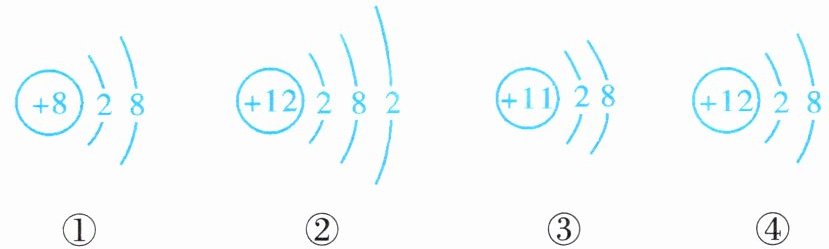 C选项:①是氧元素(质子数为8),属于非金属元素;③是钠元素(质子数为11),属于金属元素;④是镁元素(质子数为12),属于金属元素,所以①、③、④不都是非金属元素,C选项错误。