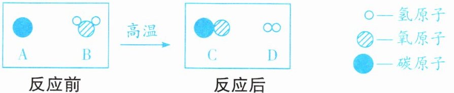 (1)由图可知,A是碳(C),B是水($H_{2}O$),C是一氧化碳(CO),D是氢气($H_{2}$),该反应是碳和水在高温条件下反应生成一氧化碳和氢气,化学方程式为$C + H_{2}O\xlongequal{高温}CO + H_{2}$。