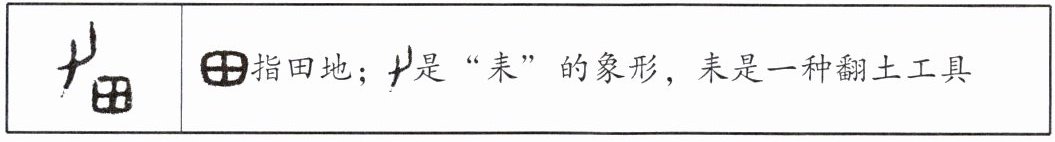 田指田地;是“耒”的象形,耒是一种翻土工具