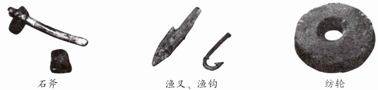 (1)用途:石斧用于开垦土地;渔叉、鱼钩用于捕鱼;纺轮用于纺织。