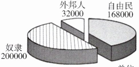 选项B:从图中可以看出,奴隶、外邦人数量众多,而公民仅指本邦除妇女、儿童、外邦人和奴隶以外的成年男子,其数量在居民总数中所占比例较小,并非超半数的居民拥有公民权,该选项错误。