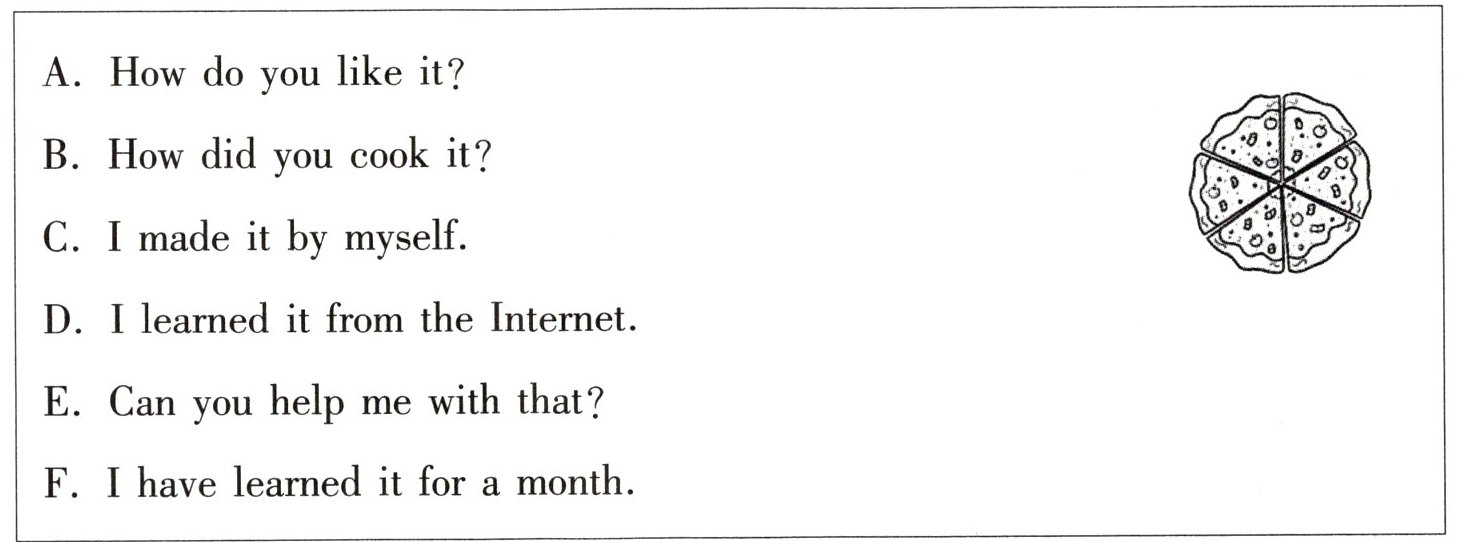 I think cooking is a good way to relax.Jack: No wonder the pizza is delicious. 3.