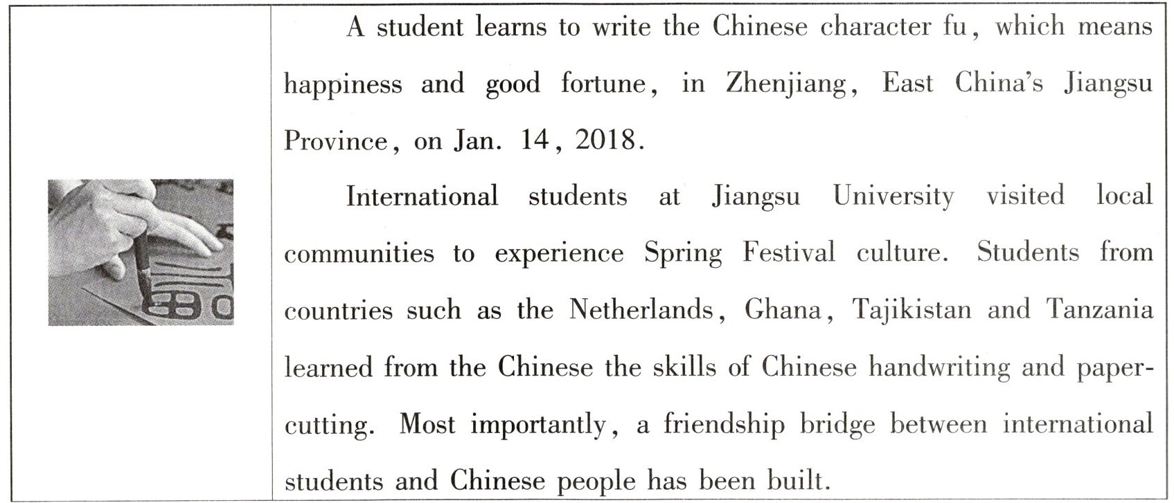 ) 1. Why did the international students visit local communities?A. To improve Chinese handwriting.