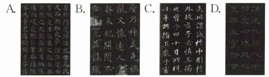 的楷书代表作之一。他的楷书用笔方整,笔力刚劲,字形竖长,结构严谨。(1 分)2. 以下书法作品中,哪一幅符合上述特点?(2 分)(