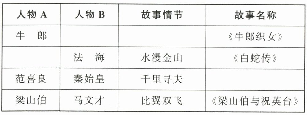 1. 织女;鹊桥相会;白素贞;《孟姜女哭长城》
