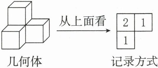 3. 用4个同样大的小正方体摆成几何体,并用下面的方式记录,数字表示在这个位置上所用的小正方体的个数。如果再添上1个同样大的小正方体(至少有1个面与其他小正方体紧挨着),并使得整个几何体从前面看到的图形不变,那么有几种不同的摆法?按照下面的记录方式把各种摆法画下来。(10分)
