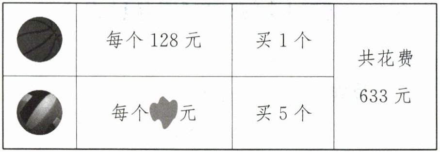 3. 体育老师不小心把购物小票弄脏了,你能帮他计算出每个排球多少元吗?(5分)