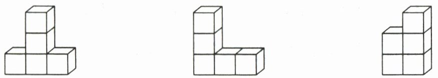 3. 在下图中紧挨着摆一个相同的小正方体,从前面看图形不变的有(
